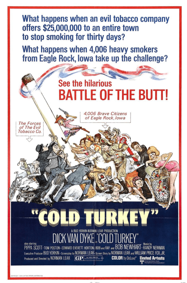 In August, 1969 all of the citizens the town of Greenfield, Iowa (pop. 2,100) attempted to quit smoking as a publicity stunt in connection with the on-site filming of the movie Cold Turkey, starring Dick Van Dyke.