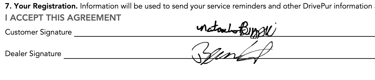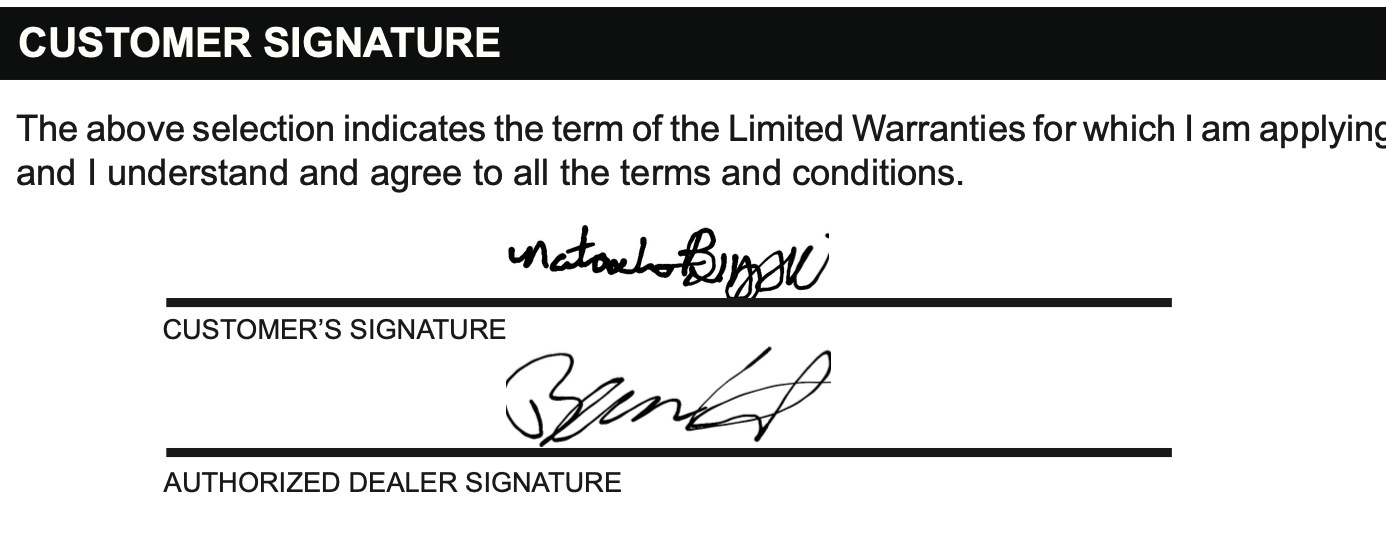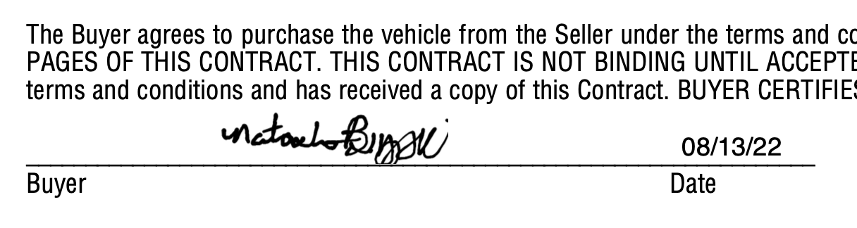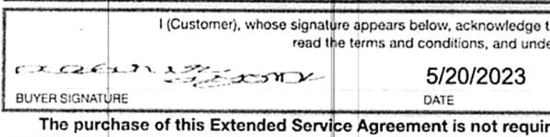 …and this is the signature on the contract for a unwanted $3,500 extended service agreement: