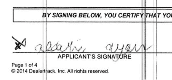 Below are the signatures on Natasha’s Red Rock Nissan documents that she says are forgeries: