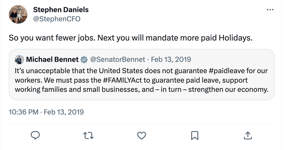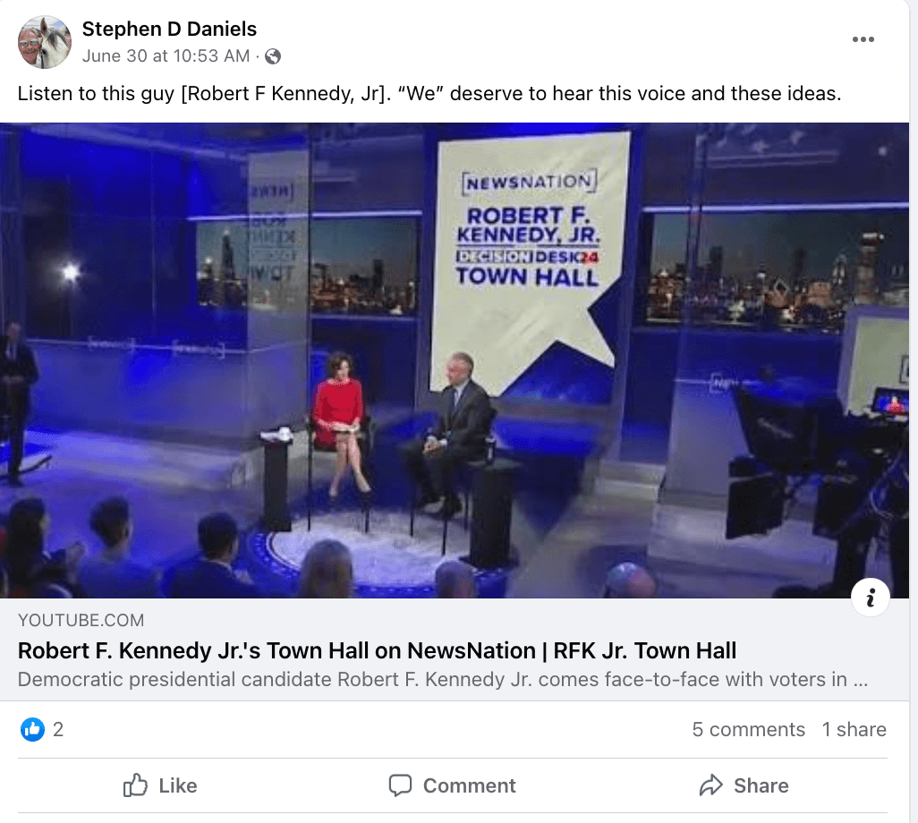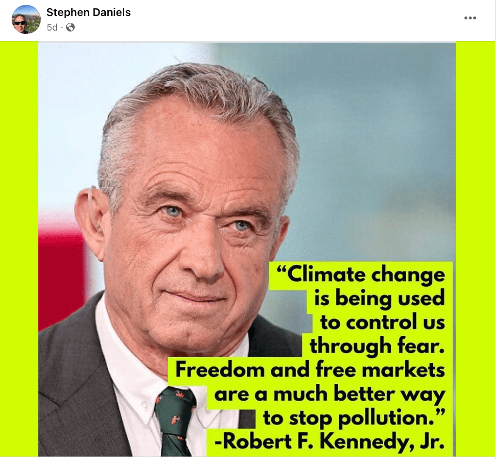 A person the Mesa County Commissioners appointed to the Board of Health yesterday, Stephen D. Daniels, is a strong supporter of anti-vax conspiracy theorist and presidential candidate Robert F. Kennedy, Jr. (RFK), according to his social media accounts. Posts on the same sources also reveal Daniels is anti-immigrant, anti-gay, anti-Disney, and a climate change denier who opposes Colorado’s new family and medical leave law, which gives workers paid time off to care for a new baby or a loved one who has a serious health condition.