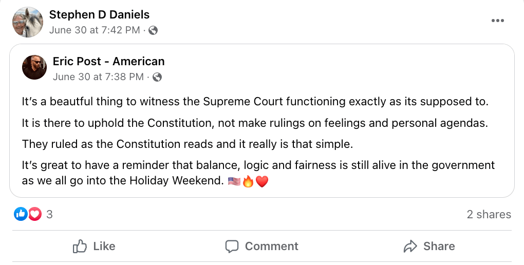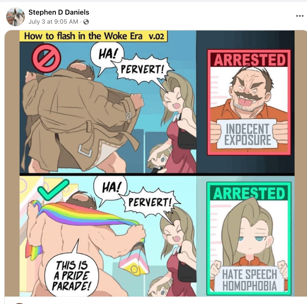 Other equally alarming posts show Daniels is a Trump supporter who believes January 6 was a peaceful day at the Capitol, who openly detests Democrats and doesn’t believe professionals like plumbers, barbers or realtors should be licensed. He also believes the current ethically-plagued Supreme Court is functioning “exactly as it’s supposed to.”