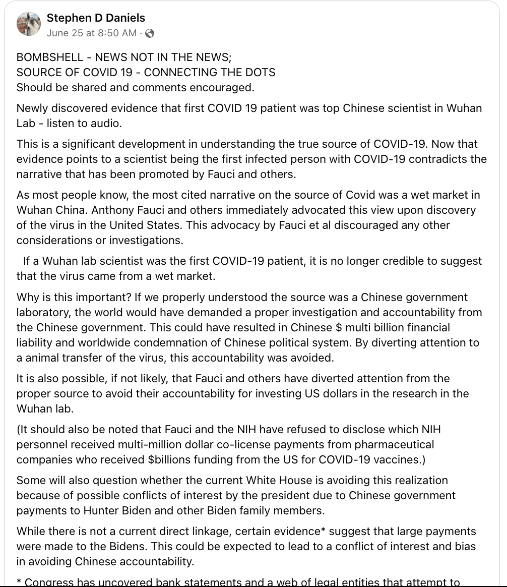 Stephen Daniels by all accounts appears to be a dangerous extremist conspiracy theorist who is inappropriate to serve on a taxpayer-funded Board of Public Health, just like Rowland herself.