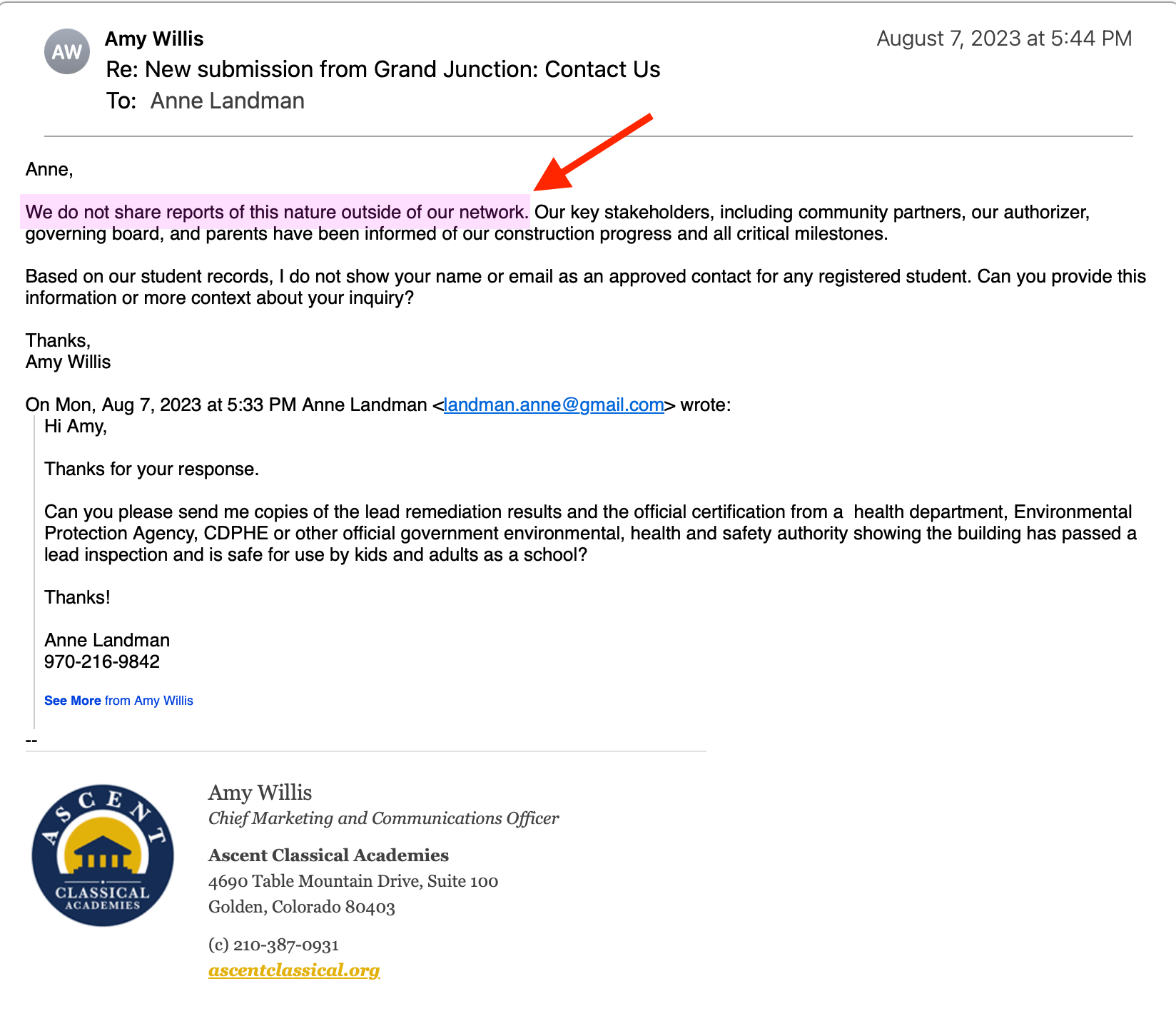 18 thoughts on “Ascent Classical Academy still has not provided proof to the public that their new school building is lead-free”
