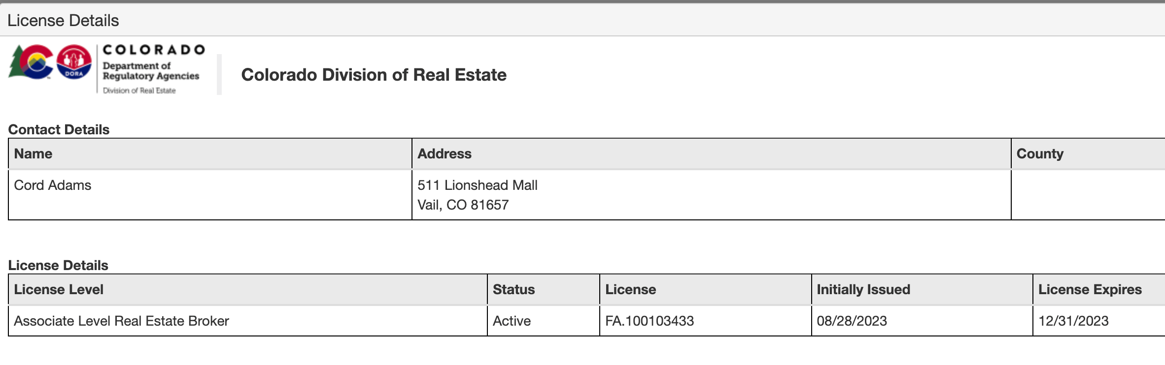 While the two appear to have gone into business together right after leaving Red Rock, it’s unclear whether they’re still in business together, as Adams also has a short-term (4 month) real estate license and appears to be selling real estate for Berkshire Hathaway as well.