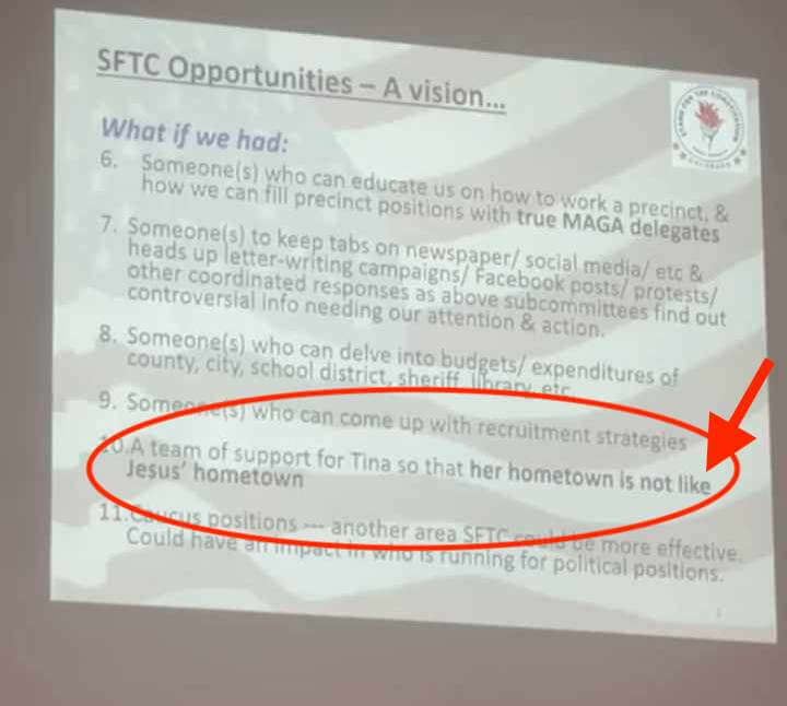 Stand for The Constitution (SFTC), the local extremist group that pushed to get Tina Peters elected County Clerk in 2018, that continued to support Peters even after her loss of 574 of ballots in 2019 and even after her indictments on multiple felony criminal charges related to election tampering, is now working to get Barbara Evanson and CynDee Skalla elected to the District 51 School Board in the November 7, 2023 election.