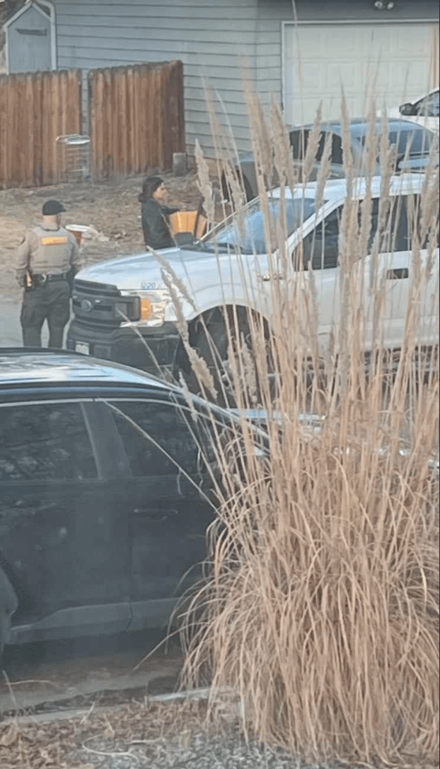 Soon people showed up in hazmat suits, and then a white truck with a camper shell without windows arrived, later identified as belonging to the Mesa County Coroner’s office. The neighbors decided that the coroner’s presence at the scene confirmed that human remains were in fact found at the house. People wearing coroner jackets then started removing items from the home last Friday, Jan. 12. The following photos were taken by a neighbor: