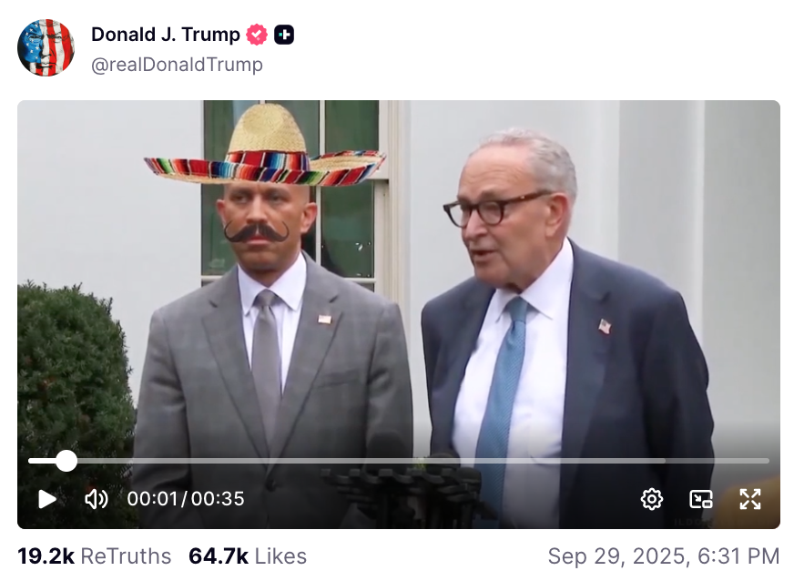 Shortly after convicted felon/sexual abuser/President Trump met at the White House with Democratic House Minority Leader Hakim Jeffries and Senate