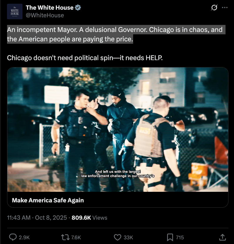 Above: Oct. 6 C-SPAN clip of Illinois Gov. JB Pritzker discussing Trump’s troop deployment to Chicago Convicted felon/sexual abuser/President Trump