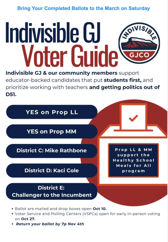 Indivisible G.J. also included the following Voter Guide for the Nov. 4 election: