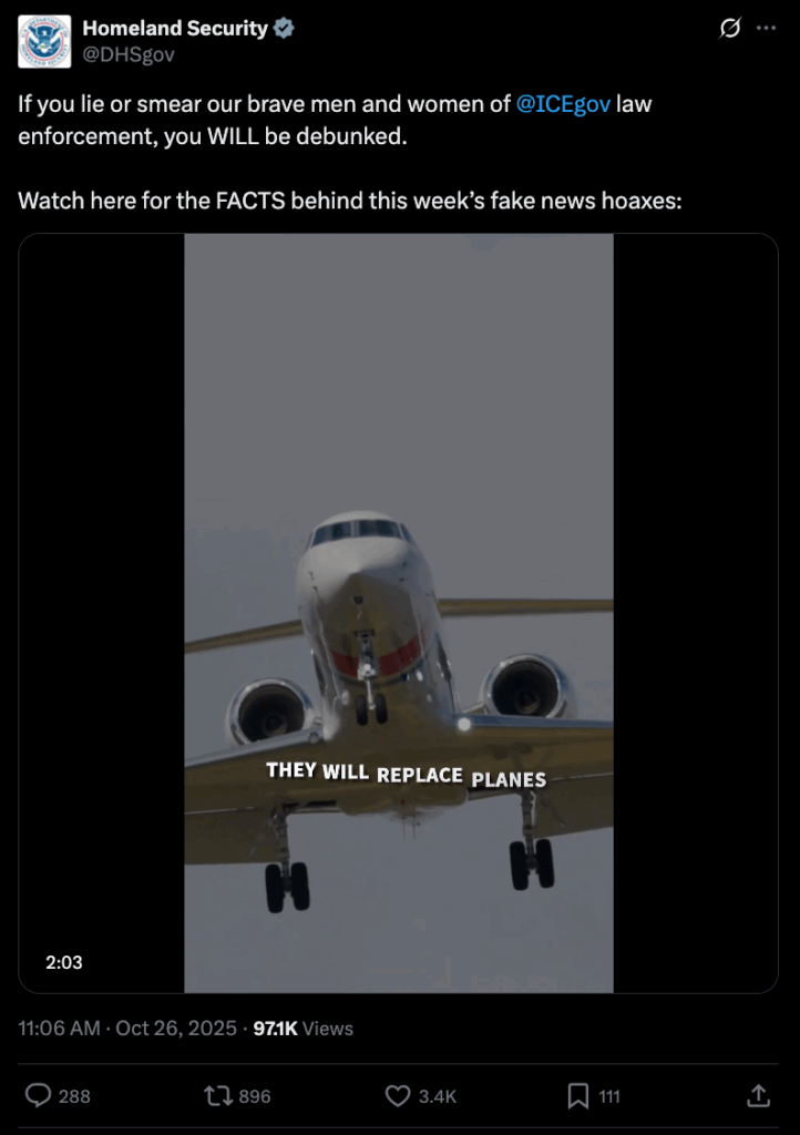 An October 29, 2025 analysis by the Washington Post found that videos the Department of Homeland Security (DHS) has been posting on social media to brag about the successes of its recent immigration operations actually use footage that is months old or that was recorded thousands of miles away from the locations where it claims the videos were taken.