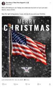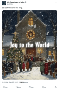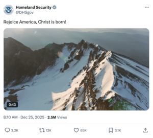 In posts that clearly violate the U.S. Constitution by using the authority and platforms of the federal government to promote specific Christian doctrine, top Trump officials issued a wave of religious messages in December exhorting Americans to observe Christmas as an official religious celebration of “our Lord and Savior, Jesus Christ.”