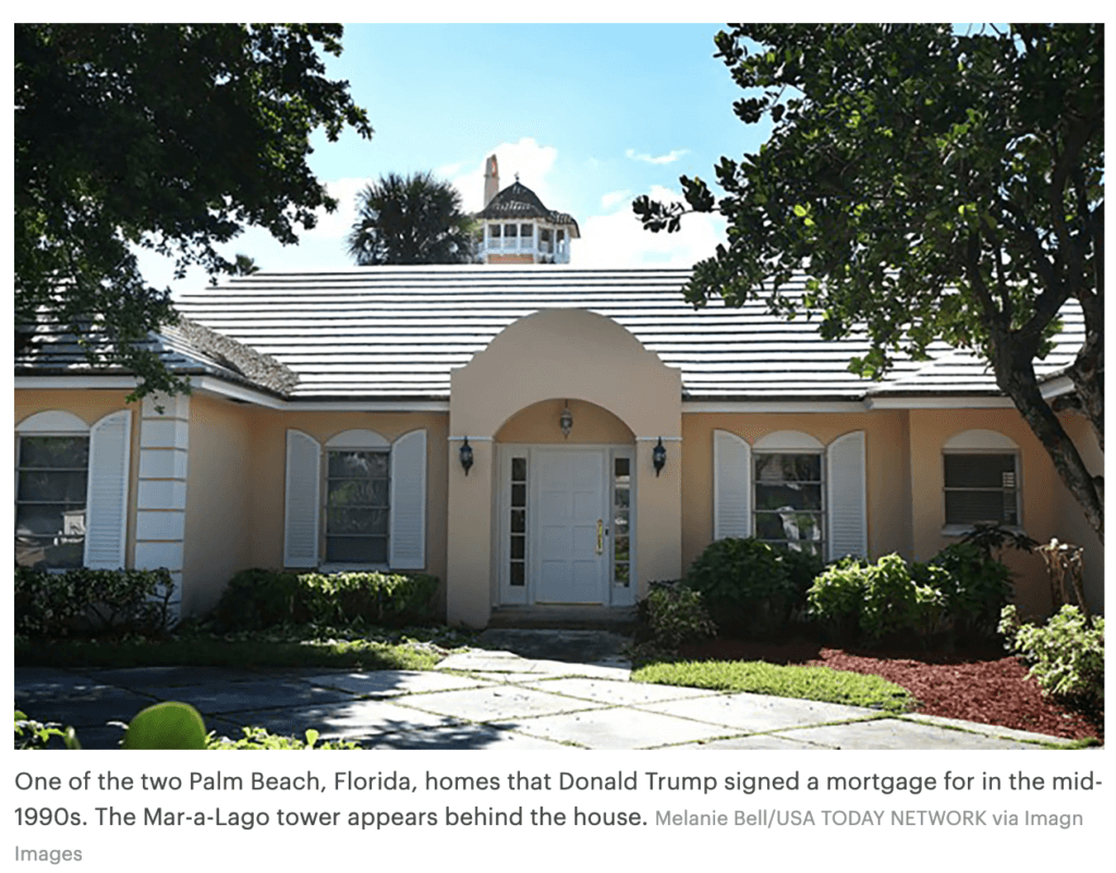In 1993, Trump signed a mortgage for a “Bermuda style” home in Palm Beach, Florida, pledging that it would be his principal residence. Just seven weeks later, he got another mortgage for a seven-bedroom, marble-floored neighboring property, attesting that it too would be his principal residence.