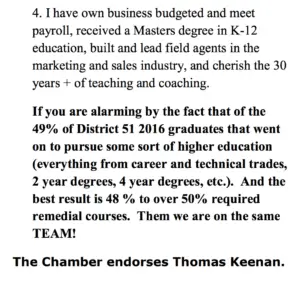 There are no reports so far on the Secretary of State’s TRACER website so far showing who, if anyone, has donated funds in support of Silzell’s candidacy, but one of her supporters is Tom Keenan, who endorsed her in a post on Facebook: