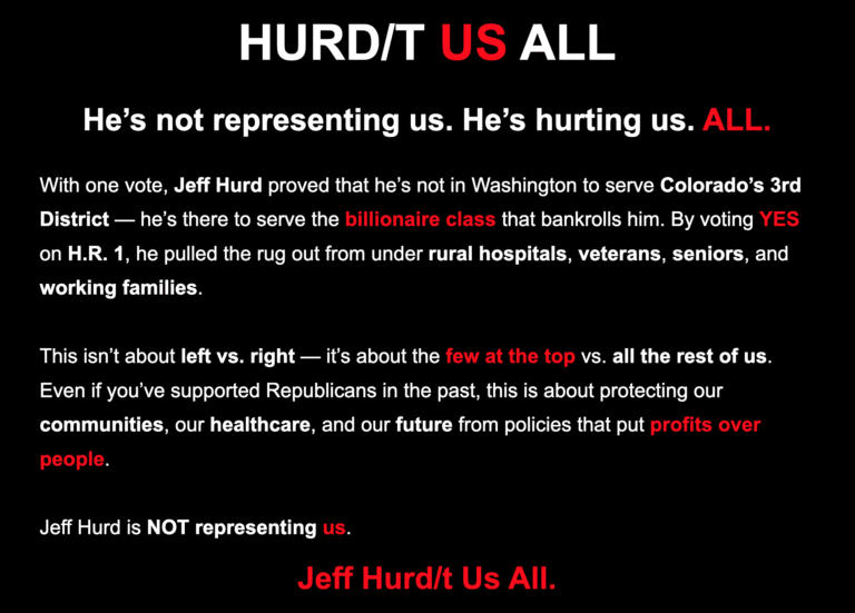 A new website, HurdUsAll.org, has sprung up to oppose Congressional District 3 House Representative Jeff Hurd (R), who voted to cut Medicaid and food assistance ...