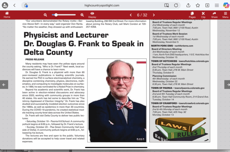 Election liar Douglas Frank, who influenced Tina Peters to compromise Mesa County’s election equipment, to speak in Delta County