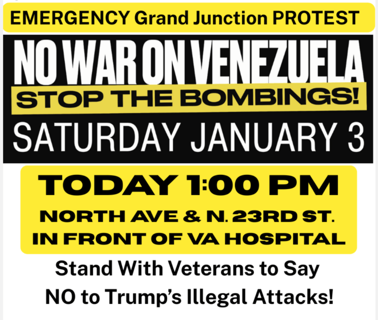 Emergency protest in Grand Junction today, 1:00 p.m. in front of VA Hospital