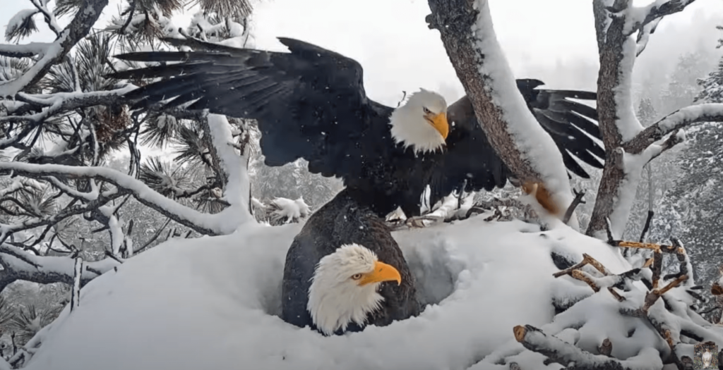 The watch for eggs to begin hatching starts on 2/29. We have our share of bald eagles visiting the Grand